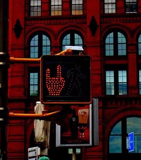 後現代藝(yì)術家設計的交通信號燈,綠色樹葉不僅是前進的意思,而且在這個圖示中還有一(yī)個誘惑性的字母A,含義極為深刻(kè),引人深思。